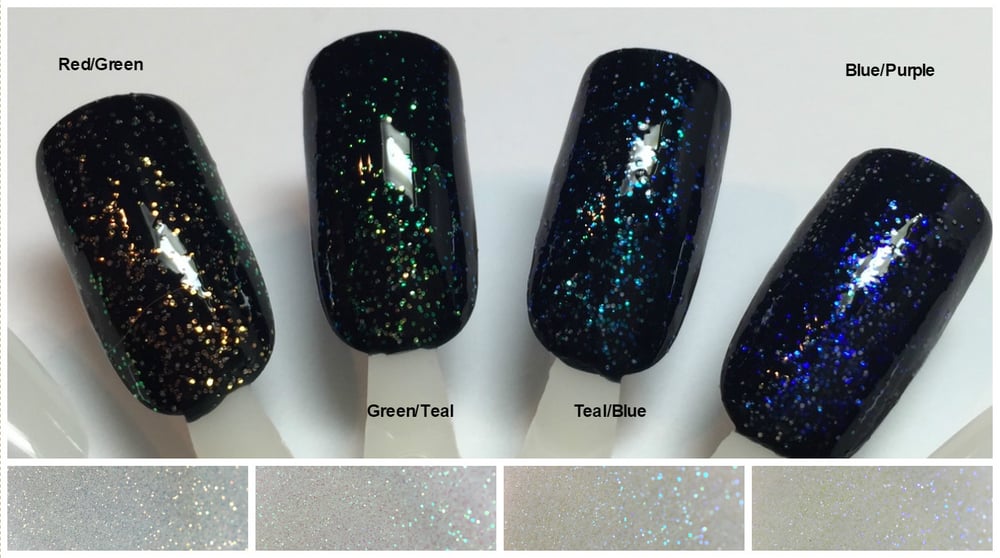 Gorgeous solvent resistant .008" iridescent color-shift hex glitter. Available in 4 colors.