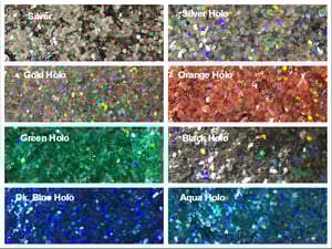 Solvent resistant 1mm metallic color-shift square glitter. Available in 16 colors. Most of these square glitters coordinate with our hex metallic glitters.